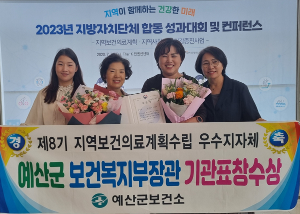 [충청뉴스 권상재 기자] 예산군보건소는 제8기(2023∼2026년) 중장기 지역보건의료계획 평가 우수기관으로 선정돼 보건복지부 기관상을 수상했다고 7일 밝혔다.