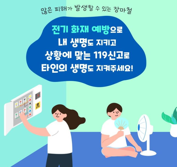 또한 젖은 손으로 콘센트나 전자기기를 만지면 안 되고, 벗겨진 전선은 미리 교체해 사고를 예방해야 한다.