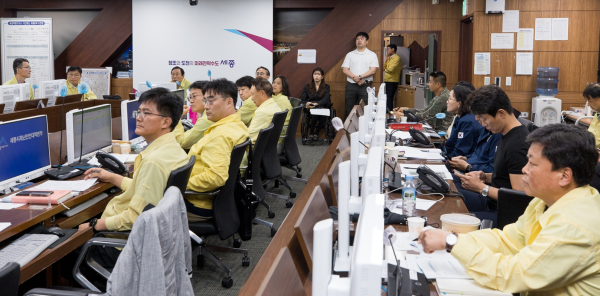 [충청뉴스 최형순 기자] 최민호 세종특별자치시장은 15일 오전 6시 출근해 재난안전대책본부가 꾸려진 상황실을 찾아 호우피해 상황을 보고 받고, 전 직원 비상소집을 통한 총력 대응을 지시했다.