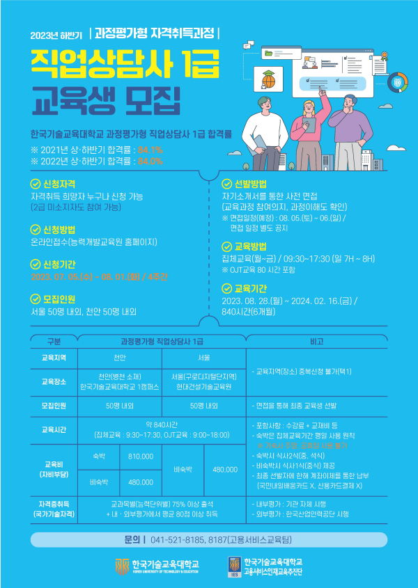 [충청뉴스 박동혁 기자] 한국기술교육대학교(이하 한기대)는 직업상담사 1급 자격취득과정 교육생을 모집한다고 17일 밝혔다.