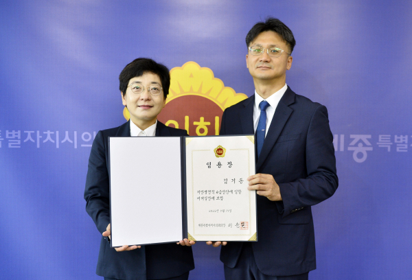 [충청뉴스 최형순 기자] 이순열 세종시의회 의장은 17일 신임 비서실장에 김기동씨(46세) 임용했다.