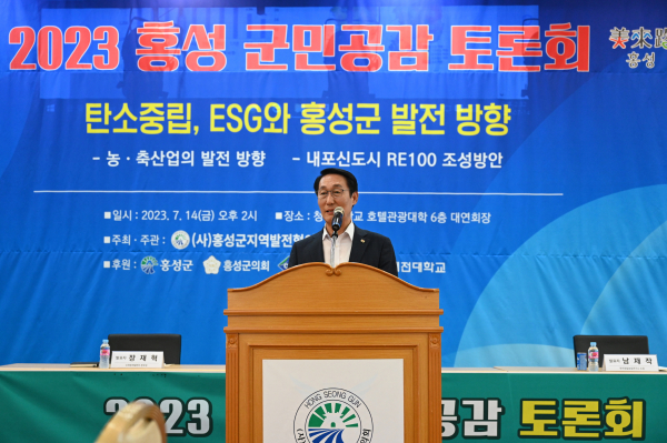 군은 이를 위해 지난 14일 (사)홍성군지역발전협의회(회장 이환진) 주관으로 청운대학교에서 ‘홍성 군민공감 세미나 및 토론회’를 개최하고 ESG 관련 주민의견 수렴시간을 갖고 본격적인 닻을 올렸다.