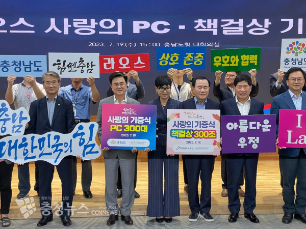도는 19일 도청 대회의실에서 김태흠 지사와 김지철 도교육감, 홍성현 도의회 부의장, 유현숙 라오스 명예대사 겸 (사)나눔문화예술협회 이사장, 도의원 등이 참석한 가운데 ‘사랑의 컴퓨터·책걸상 기증식’을 개최했다고 밝혔다.