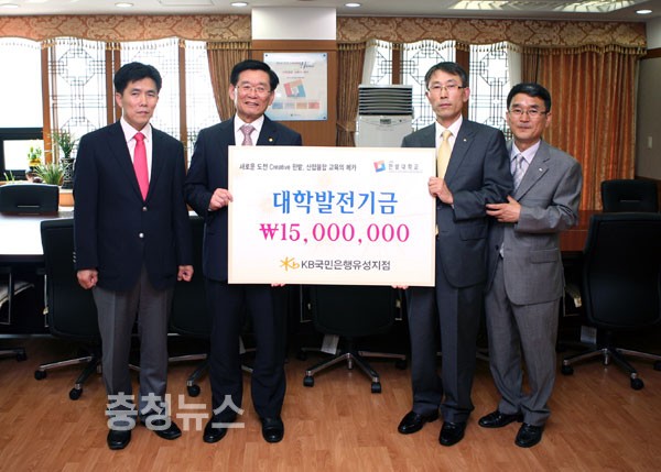 국민은행 유성지점은 우리 대학 발전을 위하여 그동안 2004년부터 현재까지 스마트카드 시스템 구축사업비 5억 등 총 6억 5천만원의 대학발전기금을 기탁하여 왔다.