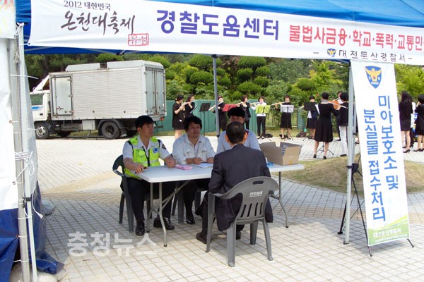 학교폭력예방 홍보 및 신고접수, 미아 보호 등 경찰도움센터 열어 대전둔산경찰서는 온천축제기간동안에 이동경찰서(경찰도움센터)를 운영하고 있다. ▲ 둔산서에서 온천축제 방문객을 상대로 경찰도움센터를 운영하고 있다. 둔산서는 온천축제의 방문객을 상대로 불법사금융단속 및 신고 접수, 학교폭력예방 홍보 및 신고접수, 미아 보호, 분실물․유실물 접수처리, 교통사고예방 홍보 및 교통민원 접수 등을 함으로써 방문객의 안전을 확보함과 동시에 국민에게 적극적으로 다가가서 국민의 바람을 듣고 치안정책에 반영하고자 노력하고 있다. 저작권자 © 충청뉴스 무단전재 및 재배포 금지 한중섭 기자 다른기사 보기 기사가 마음에 드셨나요? 충청뉴스 좋은 기사 후원하기 1,000원 3,000원 5,000원 10,000원 30,000원 50,000원 직접입력 비회원 약관동의하기 ※ 소중한 후원금은 더 좋은 기사를 만드는데 쓰겠습니다.