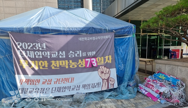 교육청 부지 내 현수막 모두 철거...천막은 최종 합의까지 유지