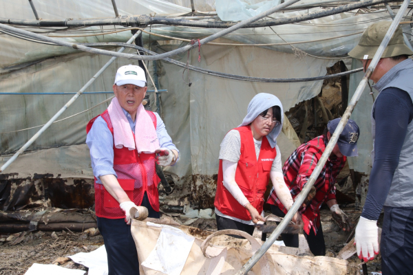 지난 26일 도당 차원에서 추진된 이번 수해복구 봉사활동에는 500여 명의 도당 당직자가 참석해 수해로 발생한 각종 쓰레기와 물에 잠긴 농작물 등을 치우고 무너진 비닐하우스를 철거했다.