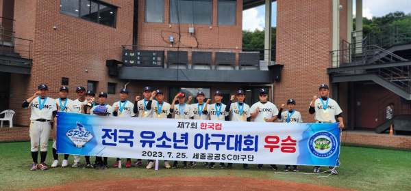 [충청뉴스 최형순 기자] 세종공공스포츠클럽의 야구 전문선수반인 ‘세종공공에스시(SC)’가 지난 25일 강원도 횡성에서 열린 ‘2023 한국컵 전국유소년야구대회’에서 주니어리그(16세 이하) 우승을 차지했다.