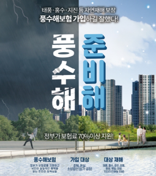 풍수해보험은 태풍·호우·대설·강풍·풍랑·해일·지진 등 자연재해에 따른 피해가 발생하면 복구에 필요한 현실적인 보상을 해주는 정부 정책보험이다.