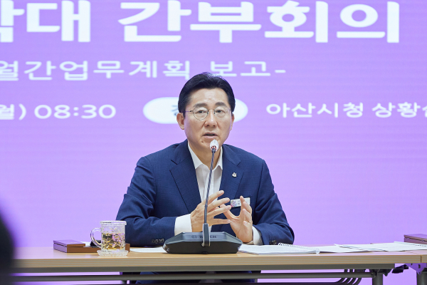 박경귀 아산시장은 지난달 31일 시청 상황실에서 열린 8월 확대간부회의에서 ”아산은 천안과 함께 디스플레이 분야 ‘국가 첨단전략산업 특화단지’로 지정됐다”며 “이를 확실한 도약 기회로 삼도록 시가 주도적으로 미래산업을 육성하고 전략사업을 기획해야 한다”고 말했다.