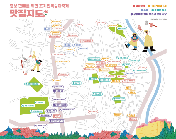 축제장 인근 식당에서는 농업정책과의 ‘싱싱 세종 쌀밥 먹는 날’을 운영해 싱싱 세종 쌀로 지은 밥을 제공한다. 이 식당들은 세종 청년들이 추천한 맛집 지도인 ‘청년 맛집이지도’에서 찾을 수 있다. 청년정책담당관에서 만든 ‘청년 맛집이지도’에는 로컬맛집, 카페는 물론 주점과 조치원 명소까지 소개돼 있어 입맛에 따라 골라갈 수 있다.