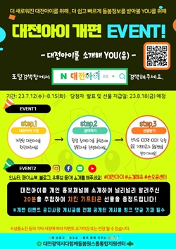 이번 개편과 이벤트는 △시공간 제약 없는 대전의 아이돌봄 통합정보 제공, △이벤트를 통한 대대적 홍보 등을 목적으로 이뤄졌다.