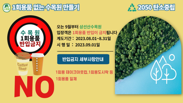 한편 삼선산수목원은 1회용품 반입 금지 결정에 대한 혼란을 최소화하기 위해 8월 한 달을 계도기간으로 정해 운영하고 있다.