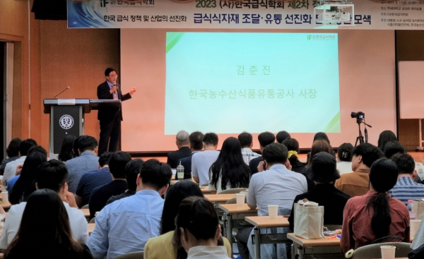 [충청뉴스 최형순 기자] 한국농수산식품유통공사 김춘진 사장은 11일 서울 서대문구 소재 연세대학교에서 개최한 ‘(사)한국급식학회 제2차 정책 포럼’에 참석해 축사하고, 관계자들과 급식 식자재 조달 및 유통 선진화 전략 방안이란 주제에 대해 심도 있게 논의했다.