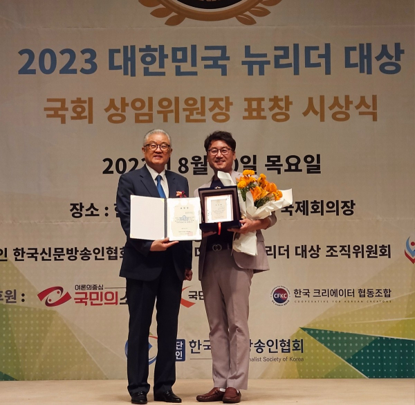 [충청뉴스 박동혁 기자] 충남북부상공회의소는 회원사인 한국물류시스템(주)과 삼성로지피아(주)의 유흥식 대표이사가 사단법인 한국신문방송인협회에서 주관하는 ‘2023 대한민국 뉴리더 대상 국회 상임위원장 표창 시상식’에서 대상을 받았다고 13일 밝혔다.