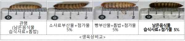 이 같은 문제 해결을 위해 산업곤충연구소는 지난해 ▲농업가공부산물 먹이원 탐색 ▲조성비 선정 및 유충 생육 조사 ▲먹이원에 따른 암모니아 발생 저감 효과 및 유충의 일반 성분 균일성 조사 등을 실시했고, 올해에는 ▲지난해 선발한 먹이와 수분조절제 적정 배합비 조성 ▲선발 수분조절제 첨가 먹이원 급여 유충 생육 조사 ▲선발 먹이원 적정 밀도 조사 등을 실시하였다.