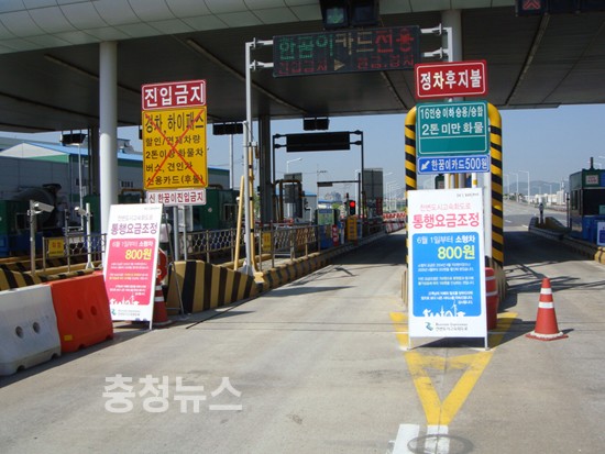 ▲ 통행료 인상을 입간판에 홍보하고 있다