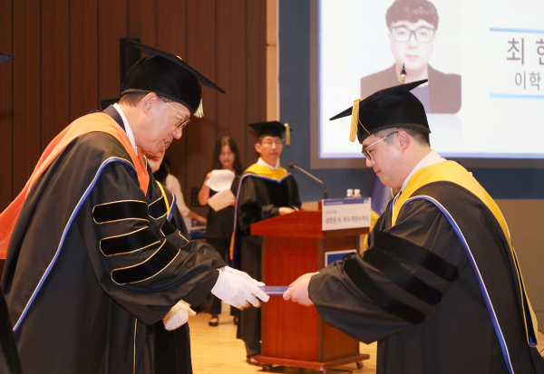 이날 학위수여식은 학사 보고, 학위증서 수여, 상장 수여, 총장 축사 순으로 진행됐다.