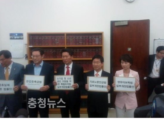 이날 제출한 법안은 민주통합당의 19대 총선 정책공약으로 ▲ ‘반값등록금법안’ ▲비정규직 문제 해결을 비롯한 ‘고용안정 법안’ ▲기초노령연금 2배 인상과 65세 이상 노인틀니 건강보험 적용 등 ‘어르신 효도 법안’ ▲ ‘친환경 무상급식 및 무상보육 법안’ 등 시급한 19개 민생법안이다.