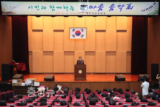 직원들의 노고 격려로, 사기 북돋는 동기 부여하고자 개최 ▲ 한마음 음악회 대전지방경찰청(청장 이상원)은 오는 30일 오후 3시 지방청 무궁화홀 대강당에서 지방청 과장·담당관, 경찰서장, 전 직원 및 경찰협력단체, 시민 등 430여 명이 참석한 가운데 2012년도 주요 추진업무에 대한 중간점검과 직원들의 노고 격려로, 사기를 북돋는 동기를 부여하고자 ‘시민과 함께하는 한마음음악회’를 개최했다. 저작권자 © 충청뉴스 무단전재 및 재배포 금지 문요나 기자 다른기사 보기 기사가 마음에 드셨나요? 충청뉴스 좋은 기사 후원하기 1,000원 3,000원 5,000원 10,000원 30,000원 50,000원 직접입력 비회원 약관동의하기 ※ 소중한 후원금은 더 좋은 기사를 만드는데 쓰겠습니다.