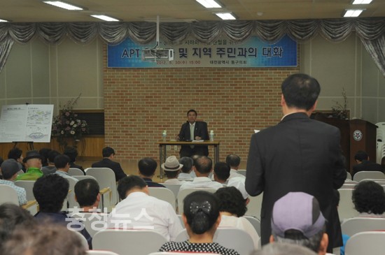 대전광역시 동구의회(의장 황인호)는 30일 대전동서초등학교 시청각실(3층)에서 홍도육교 인근 APT 입주자 대표회장, 동 대표, 통장, 주민 등 200여명이 참석한 가운데 홍도육교 지하화 사업 관철을 위한 대처방안 논의 등 주민과의 간담회를 가졌다.
