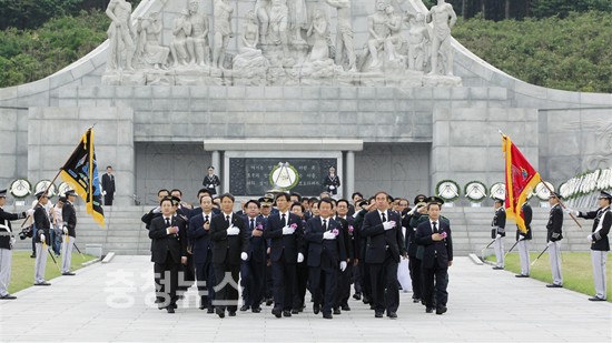 이날 추념식은 염홍철 대전시장을 비롯해 안희정 충남도지사, 이상태 시의회의장, 김신호 시교육감, 지역 국회의원, 시민 등 3000여명이 참석했다.