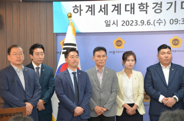 [충청뉴스 최형순 기자] 세종시특별자치시의원 일동은 6일 성명서를 통해 2027 충청권 하계세계대학 경기대회 개최를 위한 정부예산이 감액되지않고 유지ㆍ증액될 수 있도록 국회 차원의 각별한 관심과 성원을 촉구하고 나섰다.