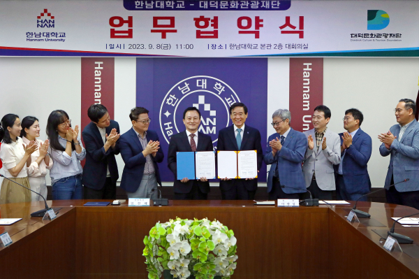 [충청뉴스 이성현 기자] 한남대학교와 대덕문화관광재단이 특색있는 문화관광 정책을 연구하고 차별화된 콘텐츠 개발을 위해 두 손을 맞잡았다.