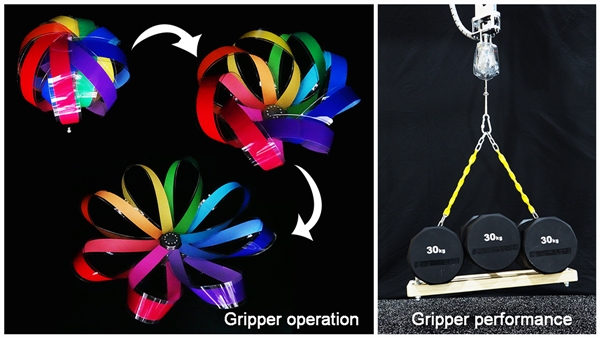 연구팀이 주목한 직조 기술은 낱개의 실을 단단히 얽어 견고한 직물을 만드는 기술로, 무거운 물건을 안정적으로 지지할 수 있어 수 세기에 걸쳐 의류, 가방 및 산업용 직물 등에 활용되고 있다. 연구팀은 얇은 PET플라스틱 띠들이 직조 구조로 얽히고 풀어질 수 있도록 설계해 그리퍼를 제작했다.