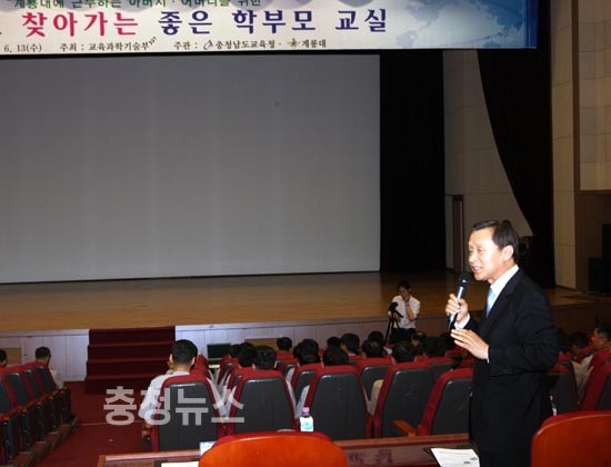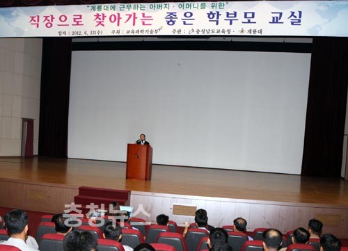 충남교육청(교육감 김종성)은 호국의 달을 맞아 13일 오후 계룡대 대강당에서 계룡대 3군 본부에 근무하는 아버지 학부모 700여 명을 대상으로 ‘직장으로 찾아가는 좋은 학부모교실’을 개최했다.