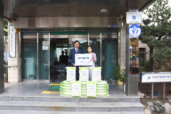 [충청뉴스 충청뉴스] 한국건강관리협회 대전충남지부(본부장 문원주, 이하 건협 대전충남지부)가 18일 따뜻한 추석을 맞을 수 있도록 탄방동 행정복지센터(동장 이옥주)에 사랑의 쌀을 전달했다.