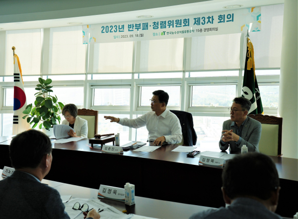 [충청뉴스 최형순 기자] 한국농수산식품유통공사(사장 김춘진)는 18일 나주 본사에서 부패 취약 분야 개선과 청렴한 조직문화 조성을 위한 ‘2023년 반부패·청렴 위원회 제3차 회의’를 개최해 임직원 음주운전 근절대책을 모색했다.