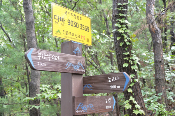 거북바위에서 되돌아서서 다시 하산한다. 도란도란 소소한 삶의 이야기를 서로 나누며 걷다 보니 어느덧 등산로 입구 주차장에 도착한다. 이곳에서 원점회귀 노고봉 산행을 마무리한다.