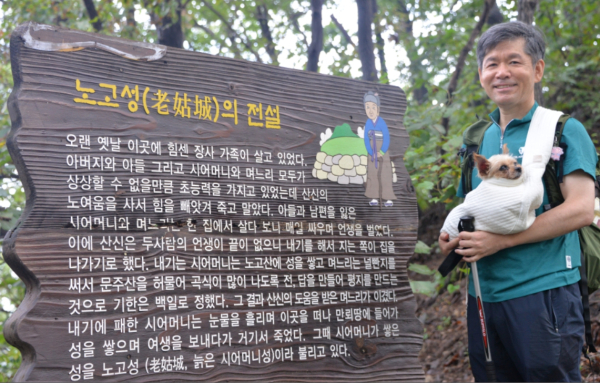 마지막 나무계단을 올라서면 늙은 시어머니가 쌓아서 노고성이라 불린다는 노고성의 전설 안내판이 있다. 그 내용은 이렇다.