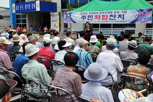 대전 중구(구청장 박용갑) 유천1동 주민자치센터는 18일, ‘주민센터 부속주차장 조성을 기념하는 주민화합잔치를 개최했다.