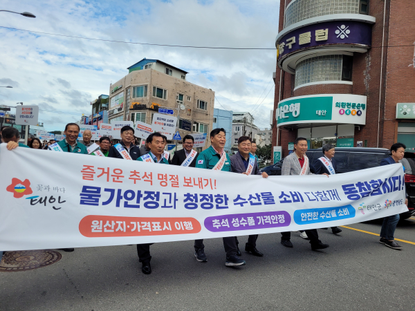 추석 명절을 맞아 물가안정 캠페인과 동시에 진행한 이날 캠페인에는 도와 태안군, 태안군의회, 소비자교육중앙회 충남지부 및 태안군지회, 충남일자리경제진흥원, 상인연합회 등 약 150여 명이 참여했다.