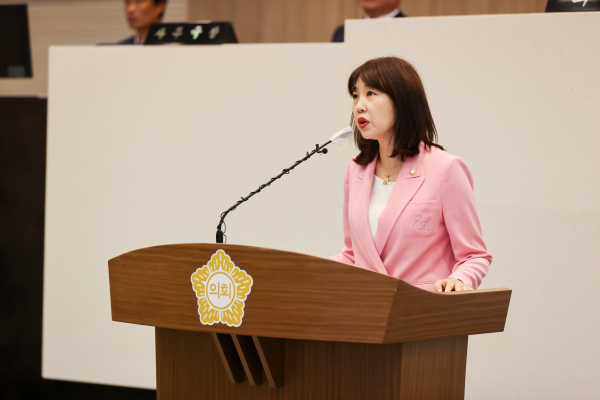 당진시의회 전선아 의원이 제104회 임시회에서 5분발언을 하고 있다.