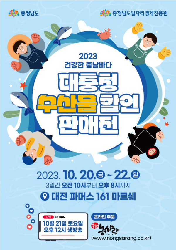 [충청뉴스 박동혁 기자] 충청남도일자리경제진흥원은 ‘2023 대충청 수산물 할인 판매전’에 참여할 기업을 모집한다고 22일 밝혔다.
