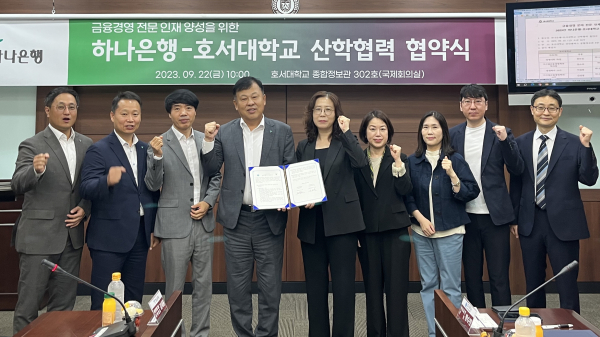 하나은행은 내년 신설되는 호서대 디지털금융경영학과 학생을 대상으로 금융교육을 지원하고, 호서대 학생들의 창업 관련 금융 서비스 상담과 해외 유학 등에 필요한 특화 서비스를 제공할 계획이다.