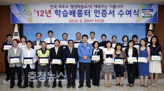 대전 대덕구(구청장 정용기)는 20일 오전 구청 중회의실에서 '학습배움터 인증서 수여식'을 개최했다고 밝혔다.