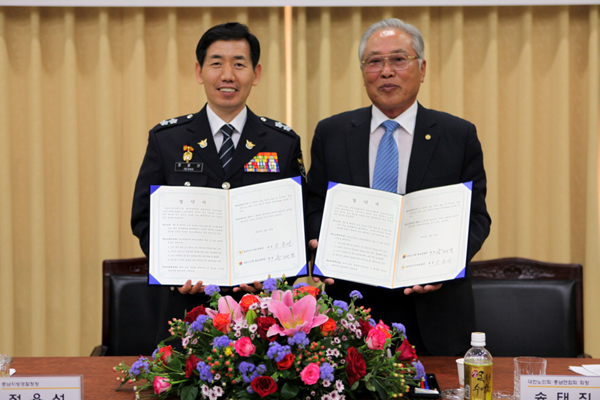 충남지방경찰청(청장 정용선)은 21일 오전 충남청 대회의실에서 대한노인회 충남연합회(회장 송태진) 임원 및 각 시·군지회장과 경찰관 등 50여명이 참석한 가운데 노인의 안전 확보와 복지 증진을 위한 업무협약을 체결하고 간담회를 가졌다.