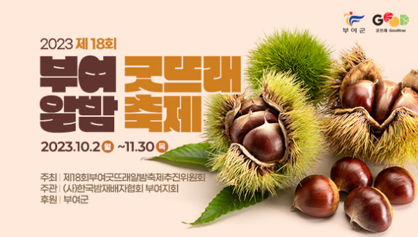 [충청뉴스 부여 = 조홍기 기자] 부여군(군수 박정현)이 전국 최대의 생산량을 자랑하는 부여 알밤을 알리기 위해 제18회 부여 굿뜨래 알밤 온라인 축제(이하 ‘축제’)를 개최한다.