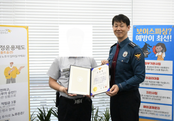 경찰관계자는 “세심한 관찰과 적극적인 대처로 시민의 소중한 재산을 지켜준 청원경찰에게 감사드리며 날로 교묘해지는 보이스피싱 피해 예방을 위해 무엇보다 금융기관의 관심이 중요한 만큼, 앞으로도 지속적인 관심을 바란다”라고 말했다.