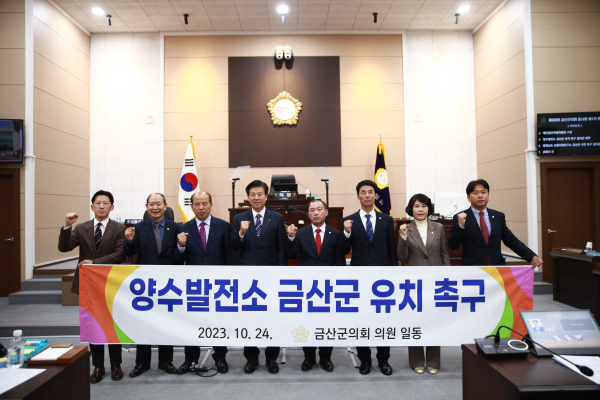 특히 군의회는 24일 임시회 본회의에서 ‘양수발전소 금산군 유치 촉구 결의문’과 ‘충청남도산림자원연구소 금산 이전 촉구 결의문’을 채택하고 양수발전소와 산림자원연구소를 금산에 유치하도록 강력히 촉구했다.