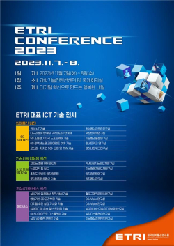 한국전자통신연구원(ETRI)은 서울 강남구 역삼동 과총 과학기술컨벤션(ST)센터에서 7일부터 이틀간 'ETRI 컨퍼런스 2023'를 개최한다고 밝혔다.
