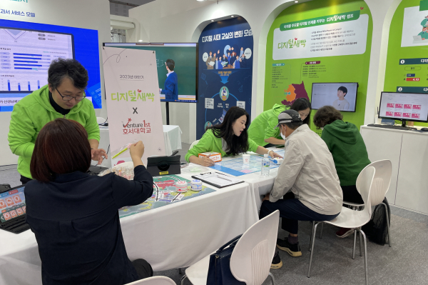 이번 체험 부스는 디지털 새싹 사업 홍보를 위해 교육부 주최로 한국과학창의재단과 호서대 디지털새싹사업단이 공동으로 마련했다.