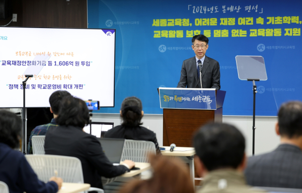 그러면서 “최근 세수 악화로 인한 지방 교육재정 여건의 어려움 속에서도 학교의 교육활동을 지원하는 교육청이라는 큰 방향과 함께, 세종교육은 멈추지 않아야 한다는 의지를 갖고 가용재원을 더욱 효율적으로 운영해 효과성을 높이고 성과가 극대화되도록 노력하겠다”라고 다짐했다.