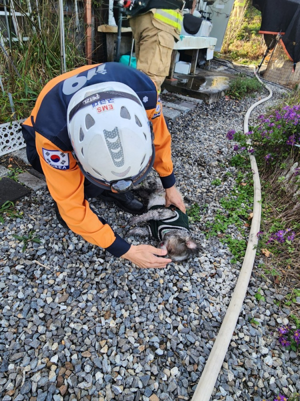[충청뉴스 권상재 기자] 충남소방이 화마 속에서 반려견을 구조, 꺼진 심장을 되살려냈다.