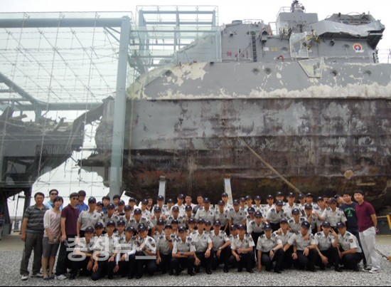 평택 해군 2함대사령부에 전시되어 있는 천안함을 직접 살펴보고 연평해전과 폭침 당시의 자세한 상황을 청취하여 안보의식을 더욱 굳건히 하는 한편 천안함 용사를 추모했다.