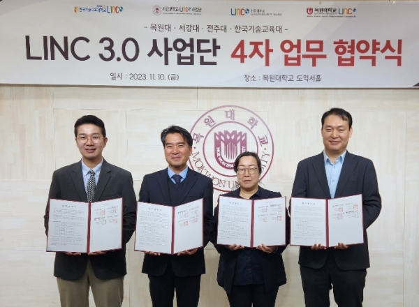 [충청뉴스 박동혁 기자] 한국기술교육대학교 LINC 3.0 사업단은 목원대·서강대·전주대 LINC 3.0 사업단과 ‘메타버스 분야 산학연협력 활성화’를 목적으로 업무협약을 체결했다고 12일 밝혔다.